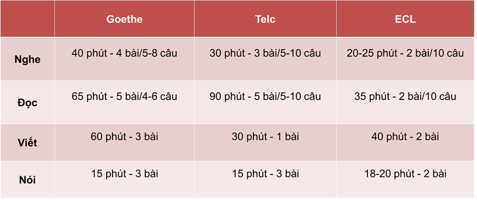 SO SÁNH KÌ THI TELC VỚI CÁC KÌ THI KHÁC